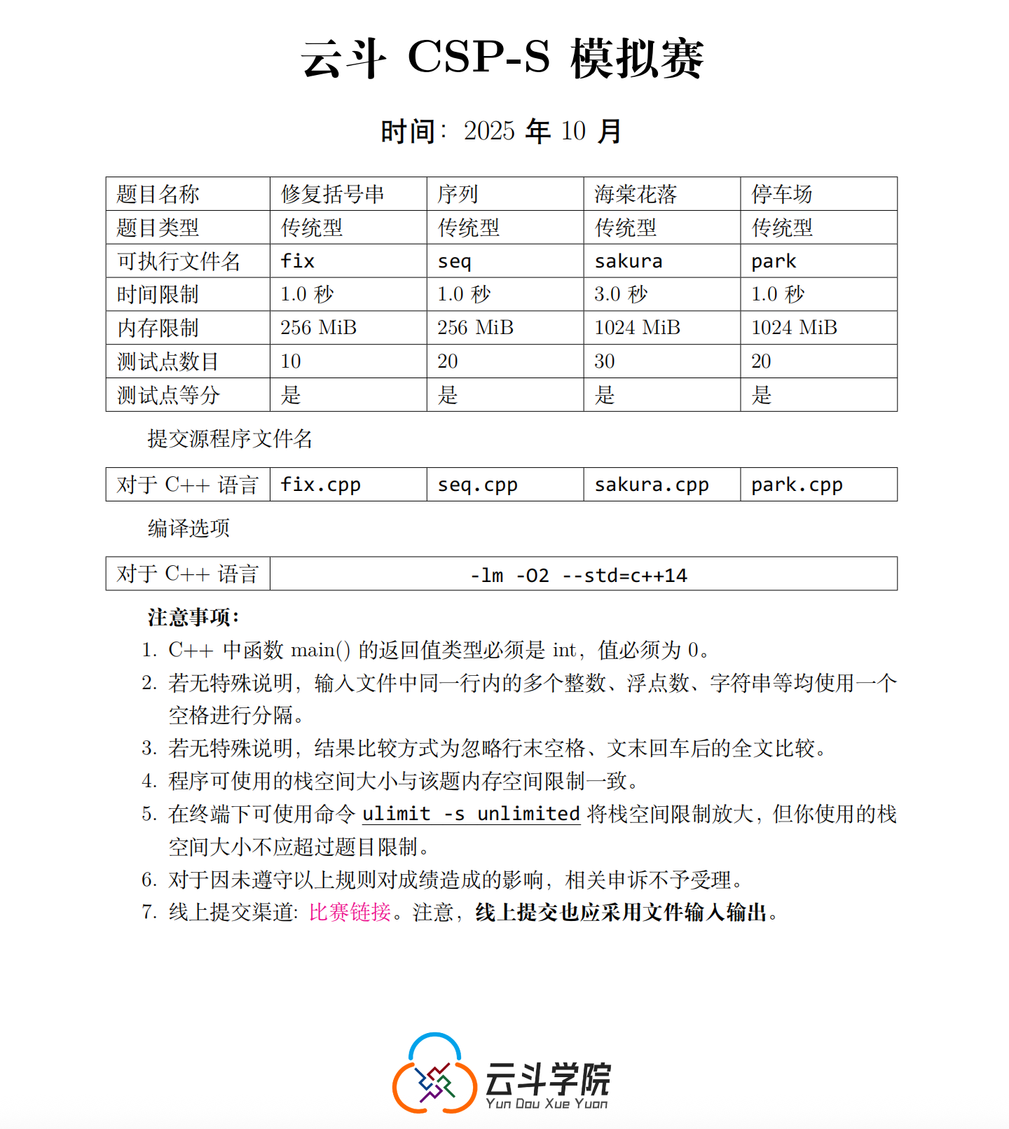 欢迎大家报名参加本次的 YDSP 2025 · 云斗 CSP-S 二轮(复赛)全真模拟!